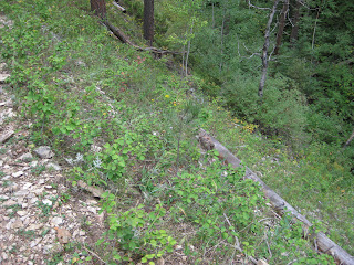 A little farther along, we came across an unmarked fork in the trail. As far as we could see, there was absolutely no way of know which path to take. We referenced our book which provided no assistance. Assuming the two would eventually reconnect, we made a decision by doing what any skilled hiker would do: "Eeny, meeny, miny, moe." We should have stopped at "miny."
